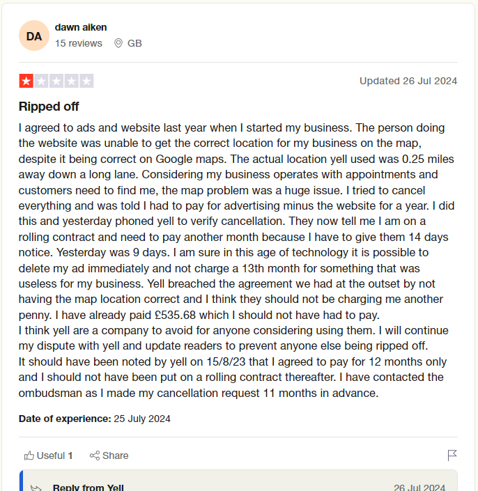 Go visit Yell’s TrustPilot and you’ll see lots of negative reviews there as well.